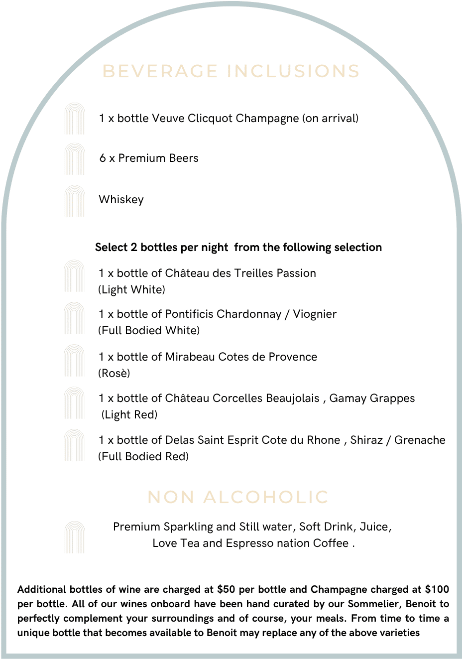 Inclusions can be customised to meet any specific dietary requirements - Please advise on booking form.